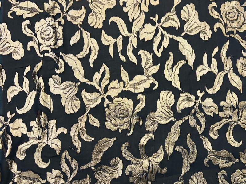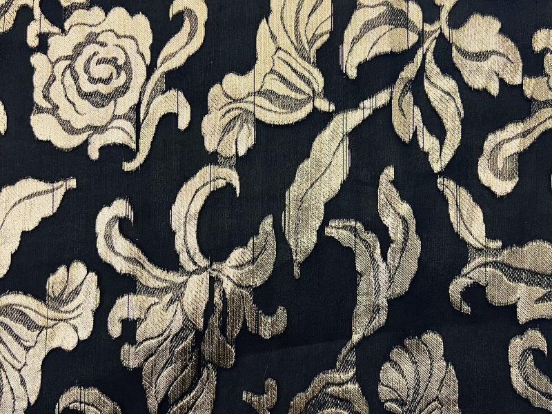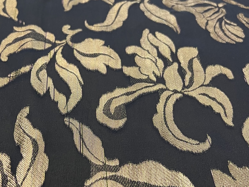 Silk Chiffon with Metallic Fil Coupé Flowers On Charcoal ground