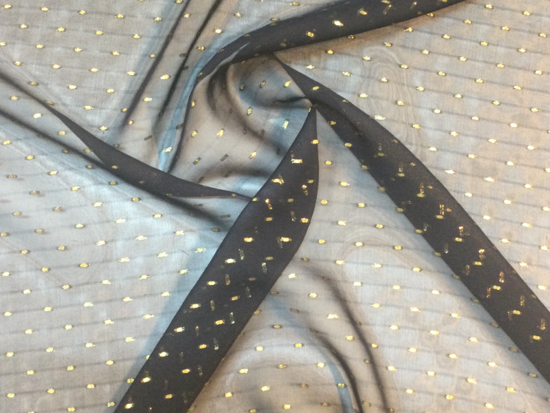 Silk Chiffon with Woven Lurex Dots in Black and Gold