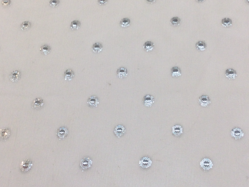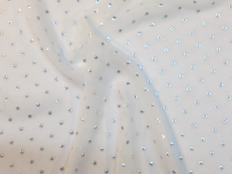 Silk Chiffon with Woven Lurex Dots in White and Silver