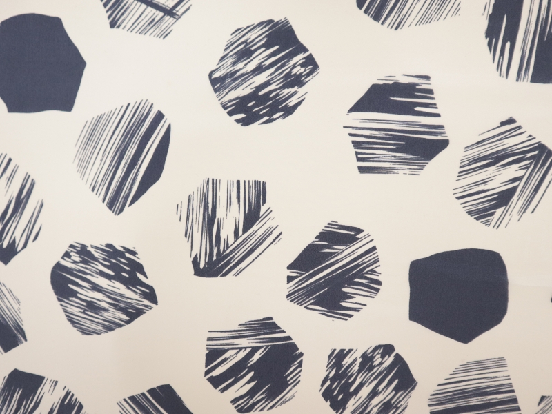 Printed Silk Crepe de Chine with Painterly Hexagonal Pattern