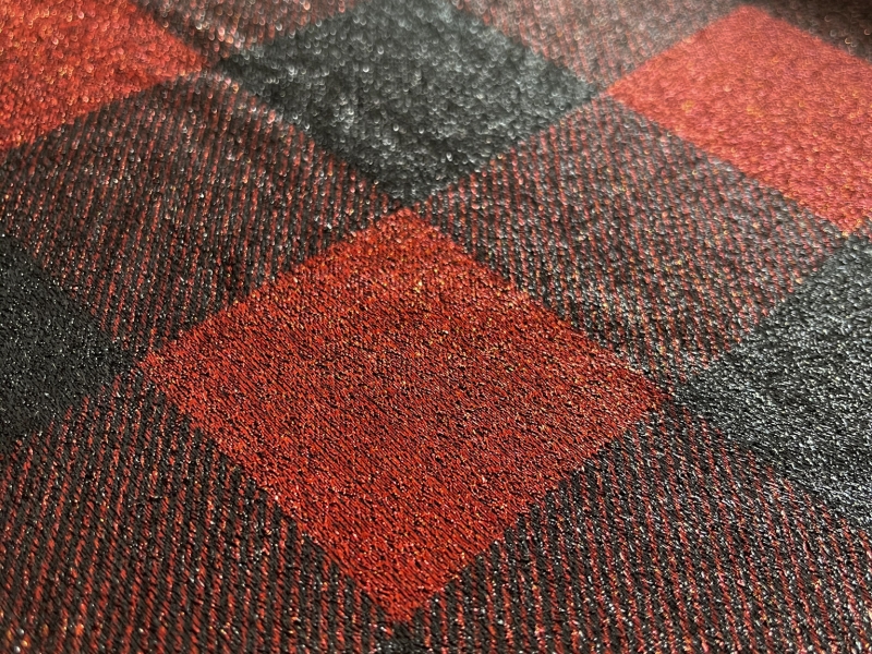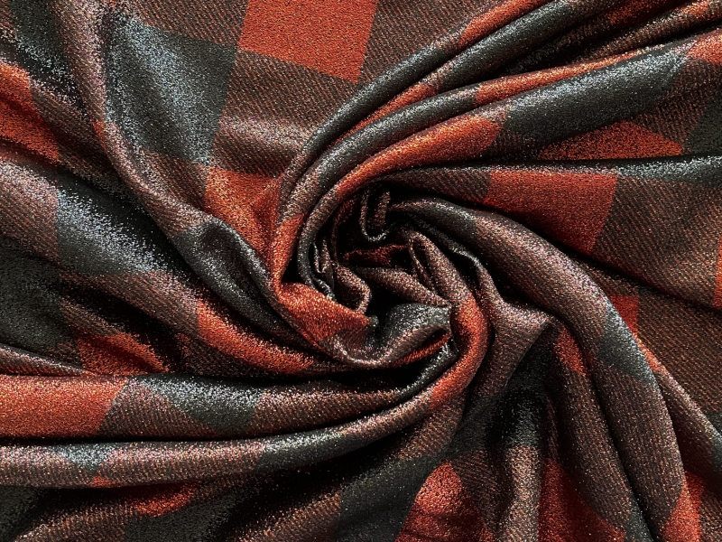 Made in Italy<br> Stretch Silk Lurex<br>In Oxblood Plaid Print