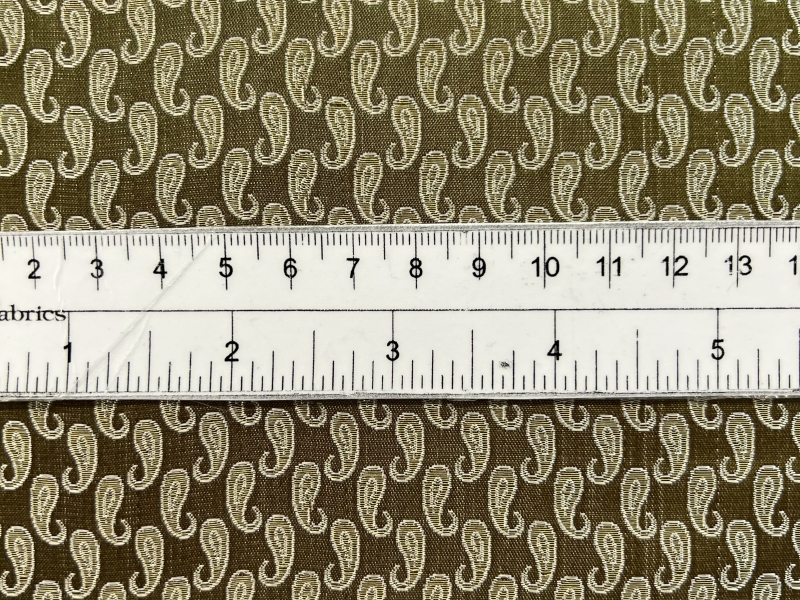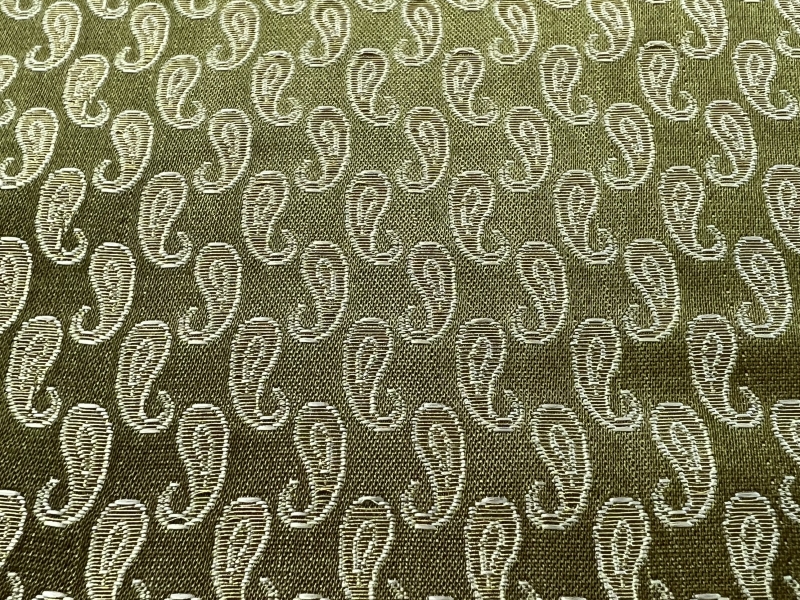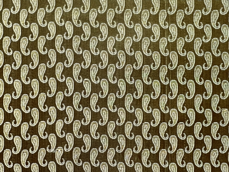 Silk Metallic small Paisley Brocade in Green & Antique Gold