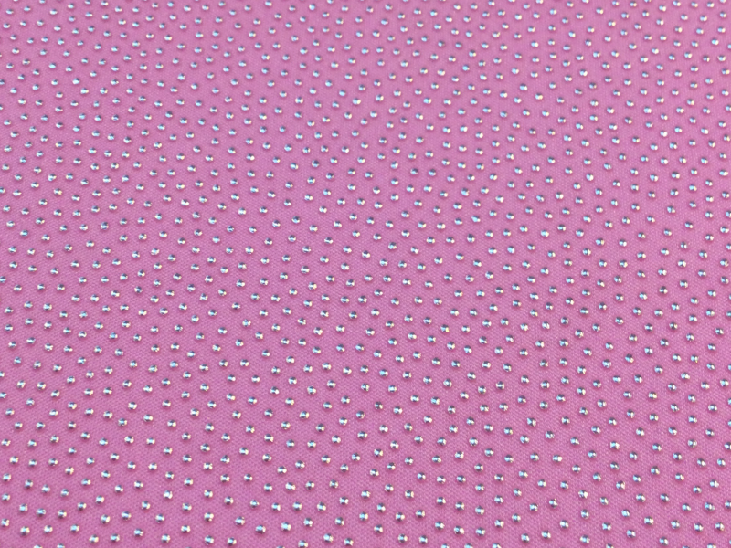 SPANDEX w/ SILVER<br>LAMINATED DOTS<BR>in BUBBLEGUM
