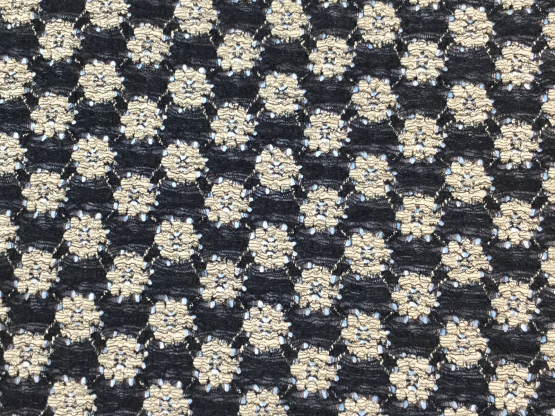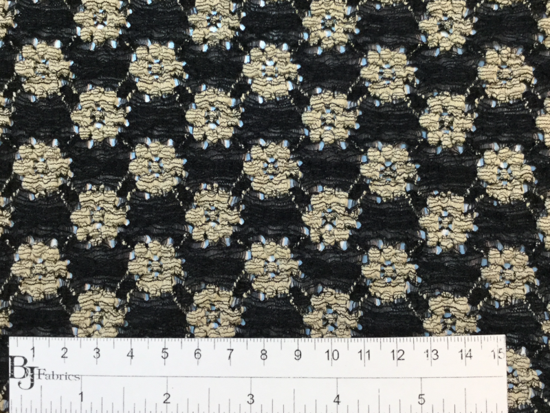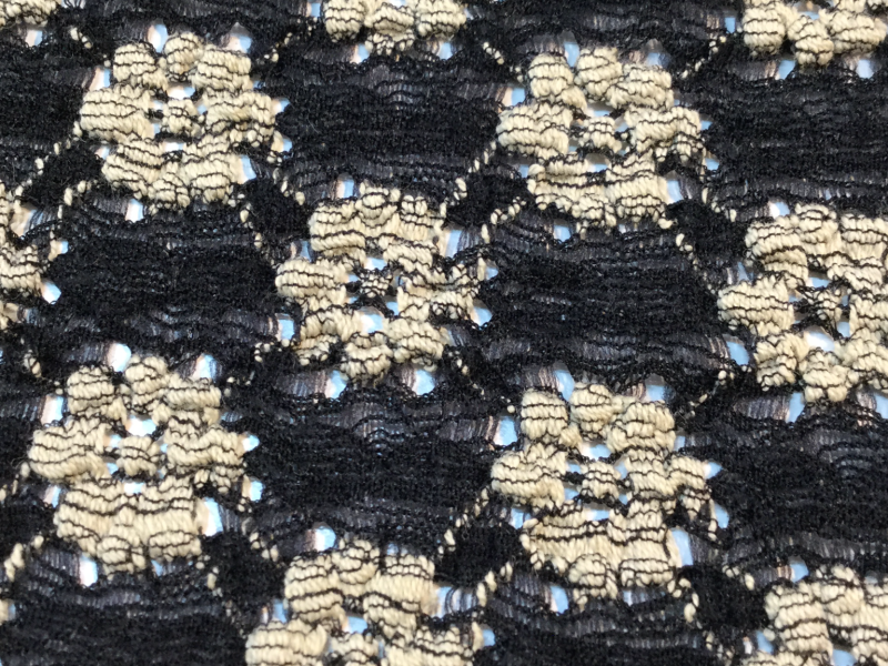 STRETCH LACE<BR>IN BLACK & CREAM <BR>FABRIC IN WAREHOUSE