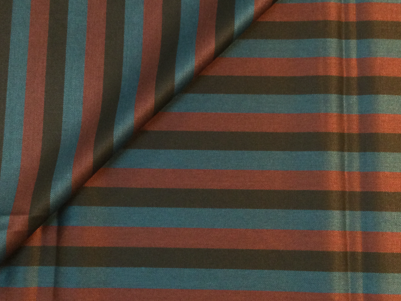 SUPER 110's<BR>WOOL/RAYON<BR>STRIPE<BR>IN TEAL/BRICK/BLACK