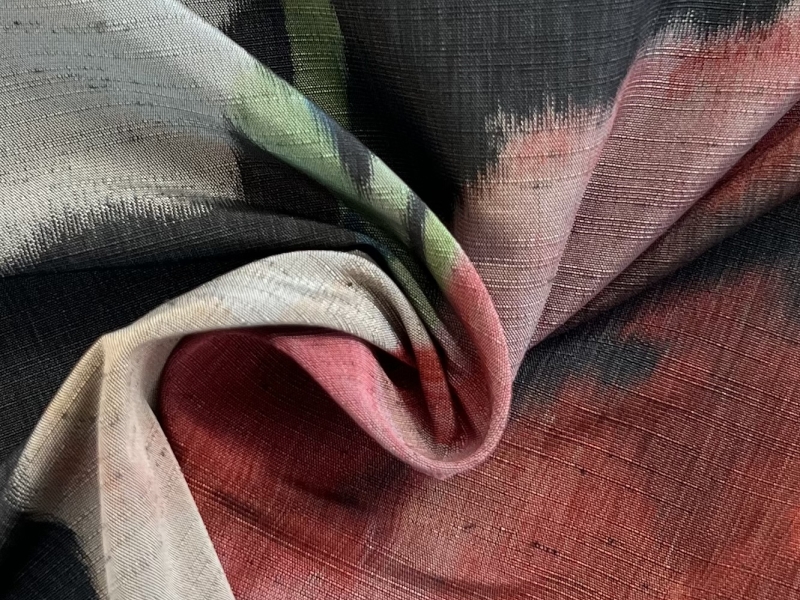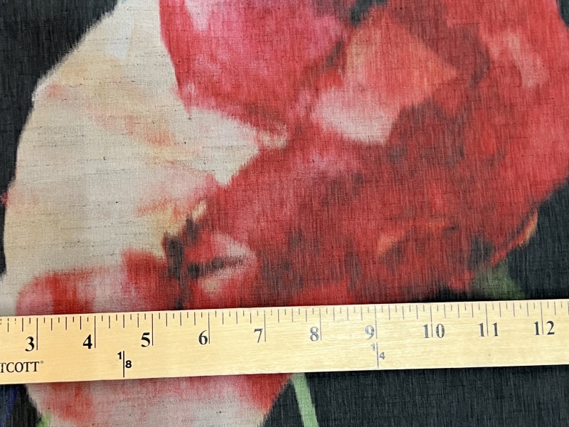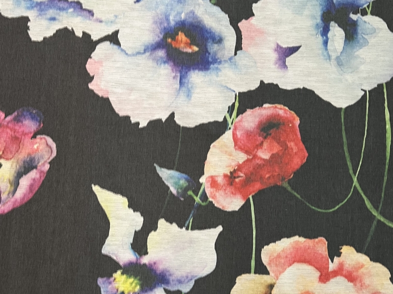 Textured Polyester Taffeta Oversized Floral Warp Print on Charcoal Ground