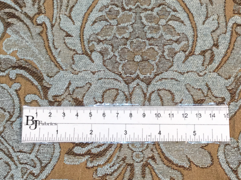 VISCOSE POLYESTER BLEND<br>CHENILLE BROCADE<br>in TEAL/BEIGE