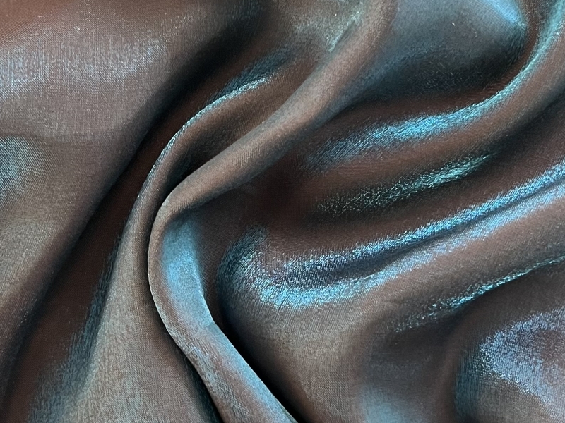 80% Viscose 20% Rayon<BR>Iridescent Charmeuse in Blue Chocolate<BR>88g/sq mtr | 2.6oz/ sq yd