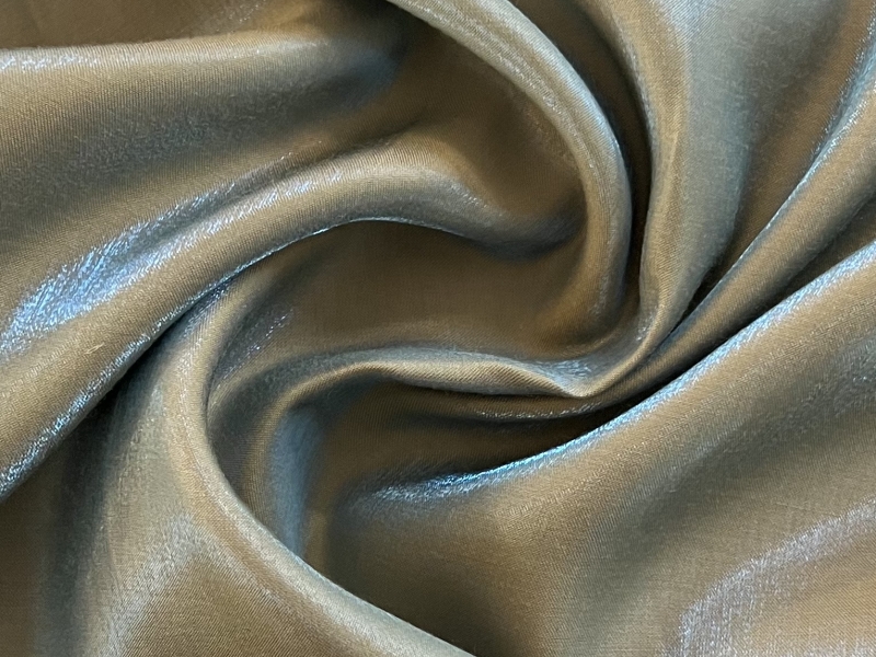 80% Viscose 20% Rayon<BR>Iridescent Charmeuse in Khaki<BR>88g/sq mtr | 2.6oz/ sq yd