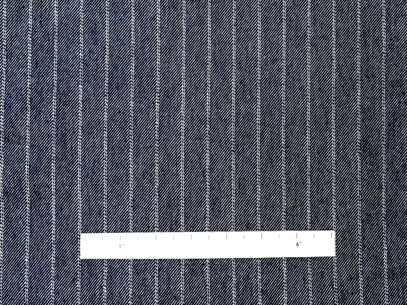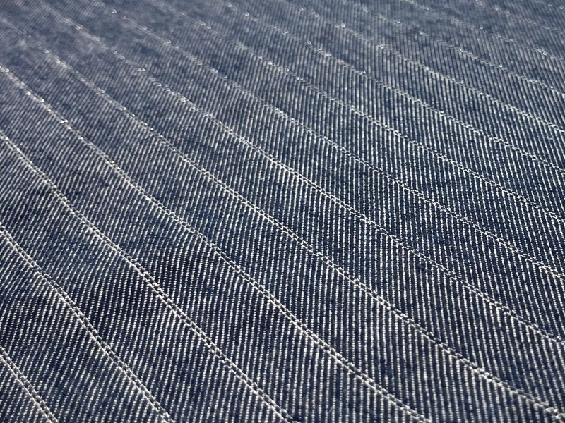 Wool and Rayon Blue Denim with Silver Metallic Stripes