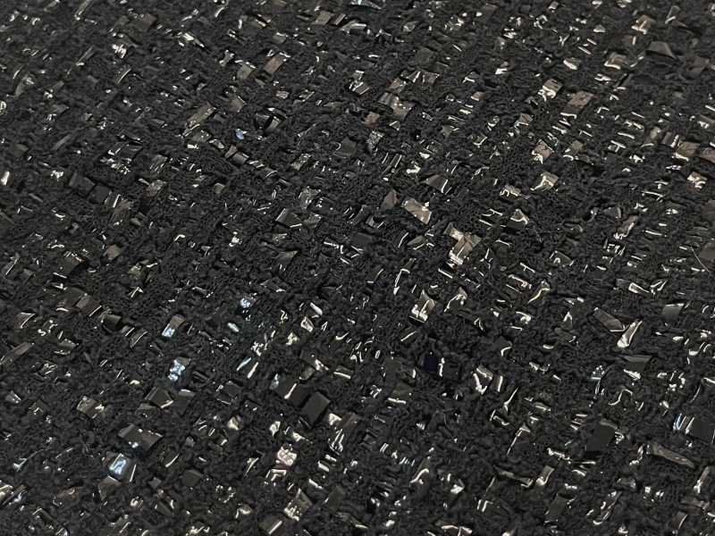 Wool Blend Lurex Tweed in Black