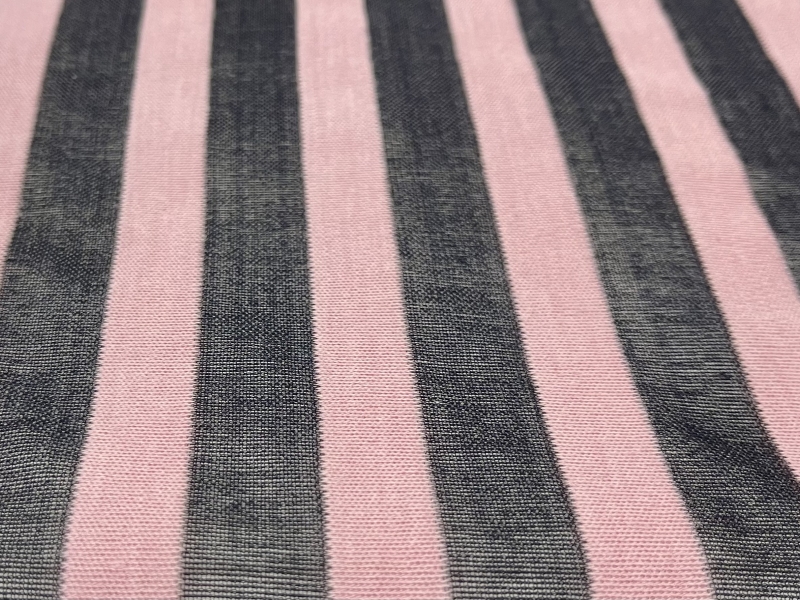 Wool Knit Stripes 1/2" in Black and Rose Pink