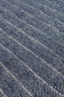 Wool and Rayon Blue Denim with Silver Metallic Stripes