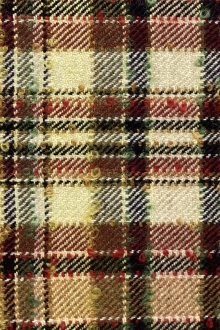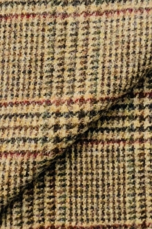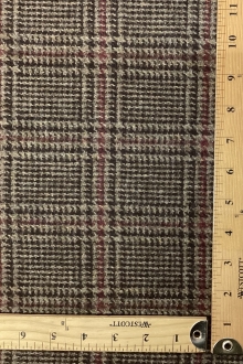 Made In Italy 100% Wool Tweed Plaid In Pinecone & Wine