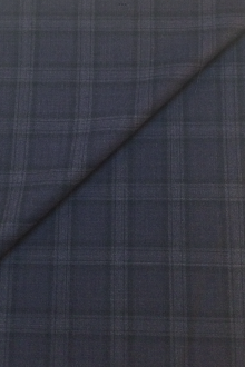 English Cashmere Wool Silk Suiting Plaid in Denim