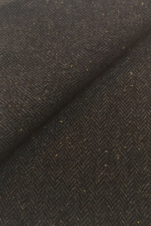 Italian Wool Herringbone Tweed Coating in Dark Chocolate and Taupe