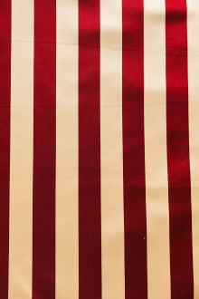 Pure Silk Duchesse Satin Stripe in Cream Burgundy