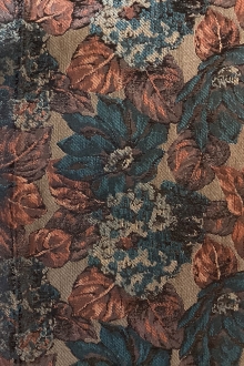 Made in Italy 100% Silk Tie Brocade with Teal & Rust Leaf Design
