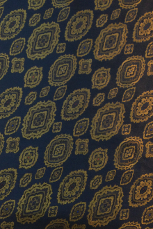 Made in Italy 100% Silk Tie Brocade with Navy/Gold Foulard
