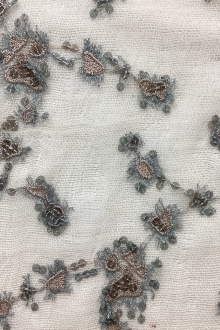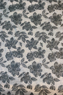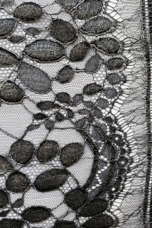 Made in France Pewter Metallic Painted Black Chantilly Lace of "Black Locust Leaf" Pattern