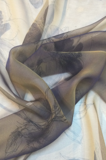 Silk Lamé Chiffon Fil Coupé in Silver & Gold Vine