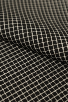 Silk Shirting with Check Pattern in Grey and Midnight Green