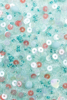 Novelty Beads and Sequins on Metallic Netting in Turquoise