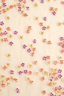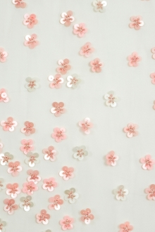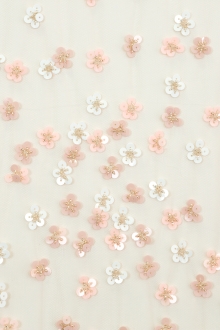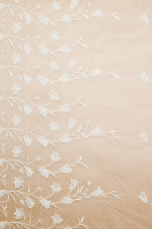 Embroidered Tulle with Botanicals and Sequins Accents in Ivory