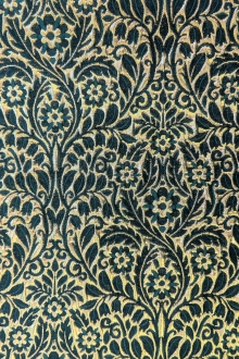 Metallic Brocade with Heavy Floral Ornamentation with Dark Blue Accents