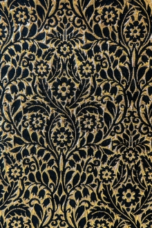 Metallic Brocade with Heavy Floral Ornamentation with Black Accents