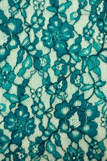 Peacock blue floral Stretch French Chantilly Lace