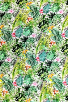 Viscose Print with Tropical Plants and Birds of Paradise