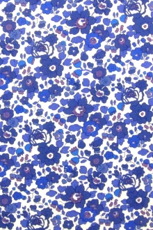 Printed Silk Chiffon Pink Red Blue Florals On Dark-Brown Blue Yellow Mansion Background